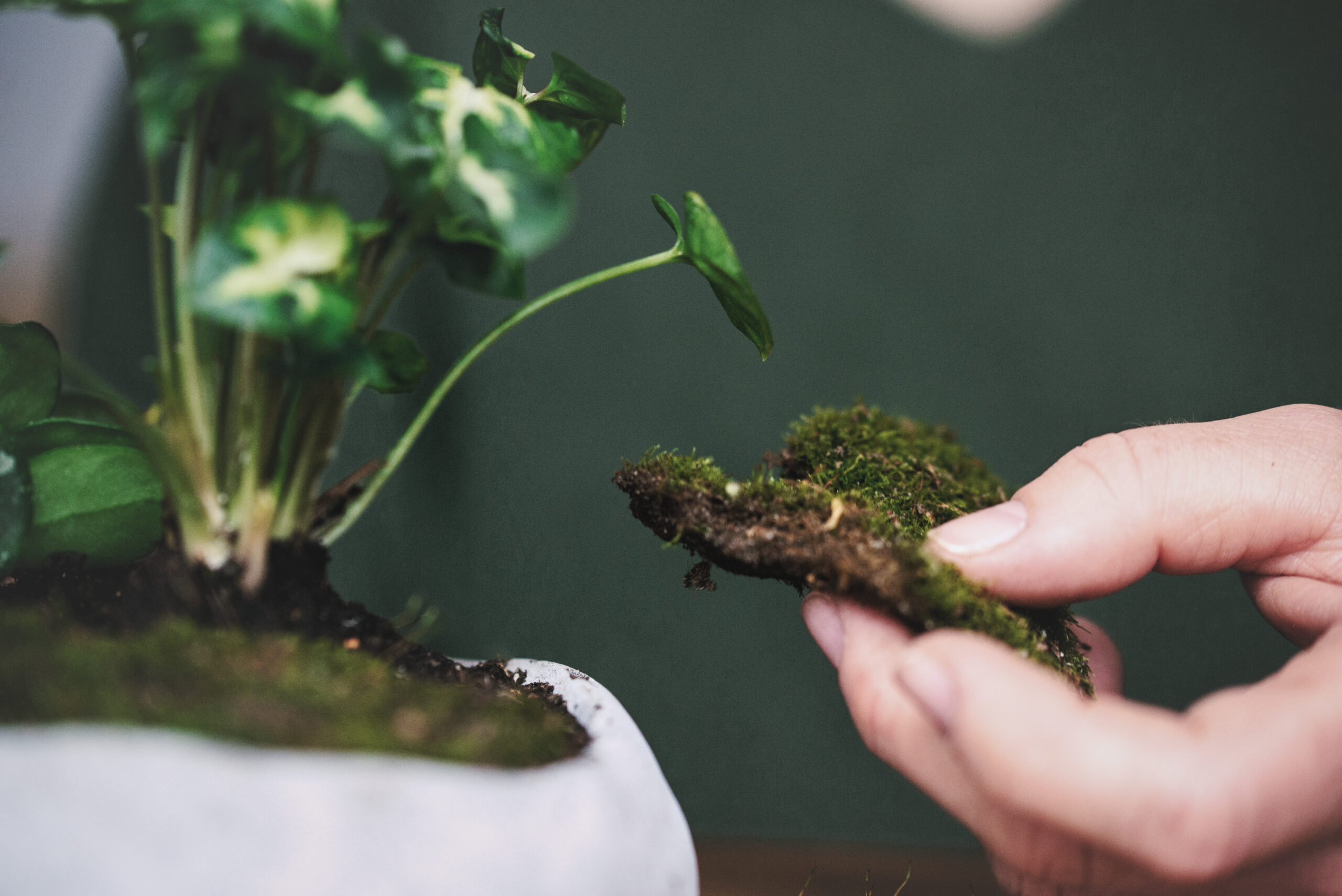 Zapewniam wszystkie materiały potrzebne do stworzenia kompozycji – rośliny, podłoże, naczynie, dodatki i narzędzia.